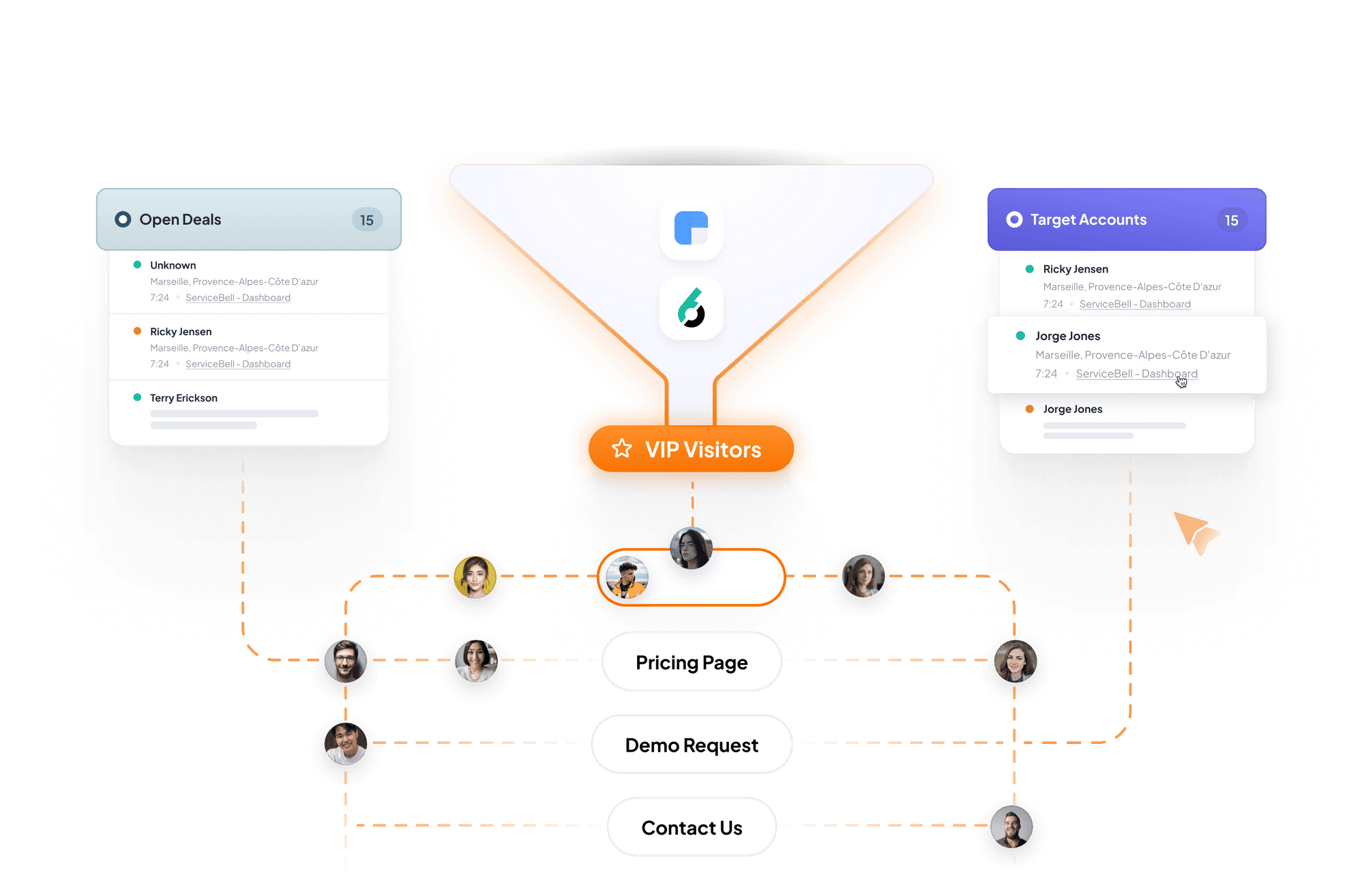 ServiceBell surfaces qualified accounts visiting your website, without submitting a form. Then, re-engage and convert hot accounts with outbound emails and targeted ads. Instead of taking shots in the dark, focus on the right prospects at the right time - every time.